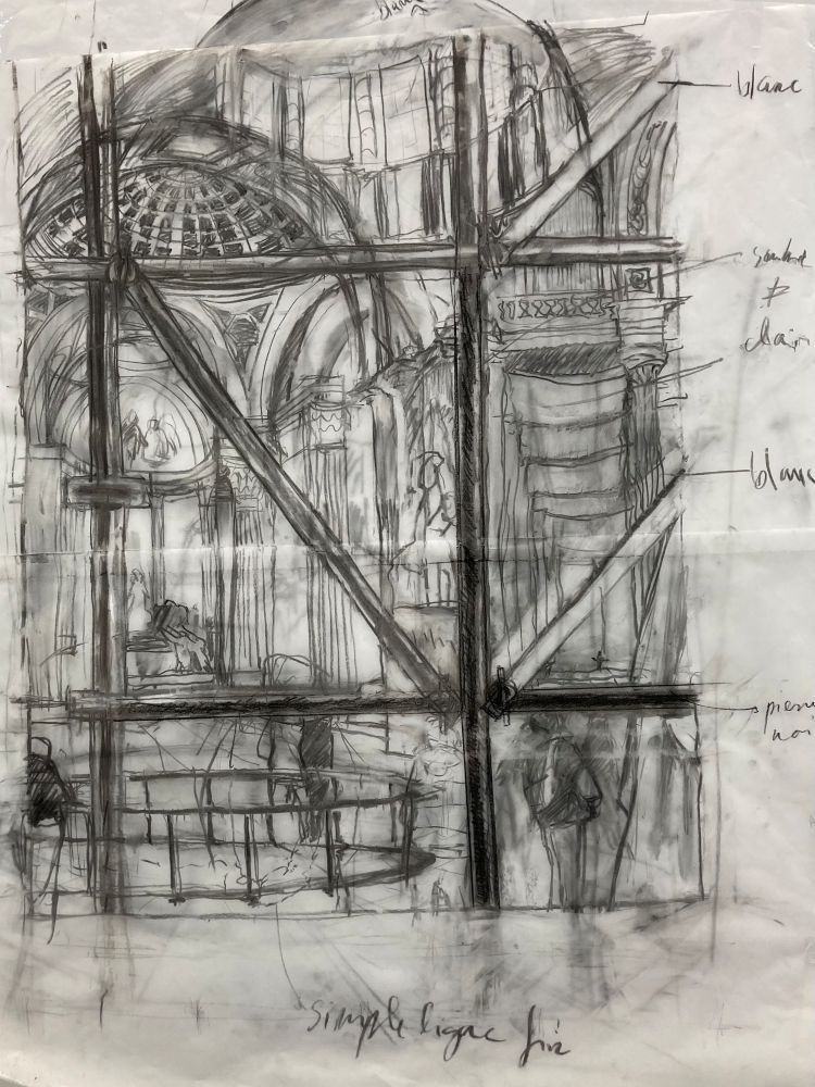 Le workshop de réalisation vidéo proposait d’explorer le Panthéon à travers une expérience sensible et chorégraphique, traduite par le langage cinématographique. Cette exposition présente les travaux d’étudiants issus de deux enseignements conjoints menés en janvier 2026 au Panthéon, à Paris : Filmer [dans] le Panthéon et Échelles du dessin et figurations de la mémoire. En croisant vidéos et dessins, l’exposition met en dialogue différentes expériences et interprétations de ce site emblématique d’un récit national et de la mémoire républicaine. Elle propose, en faisant affleurer le passé dans le présent, de convoquer nos mémoires et de mobiliser nos affects pour esquisser une pensée du commun.